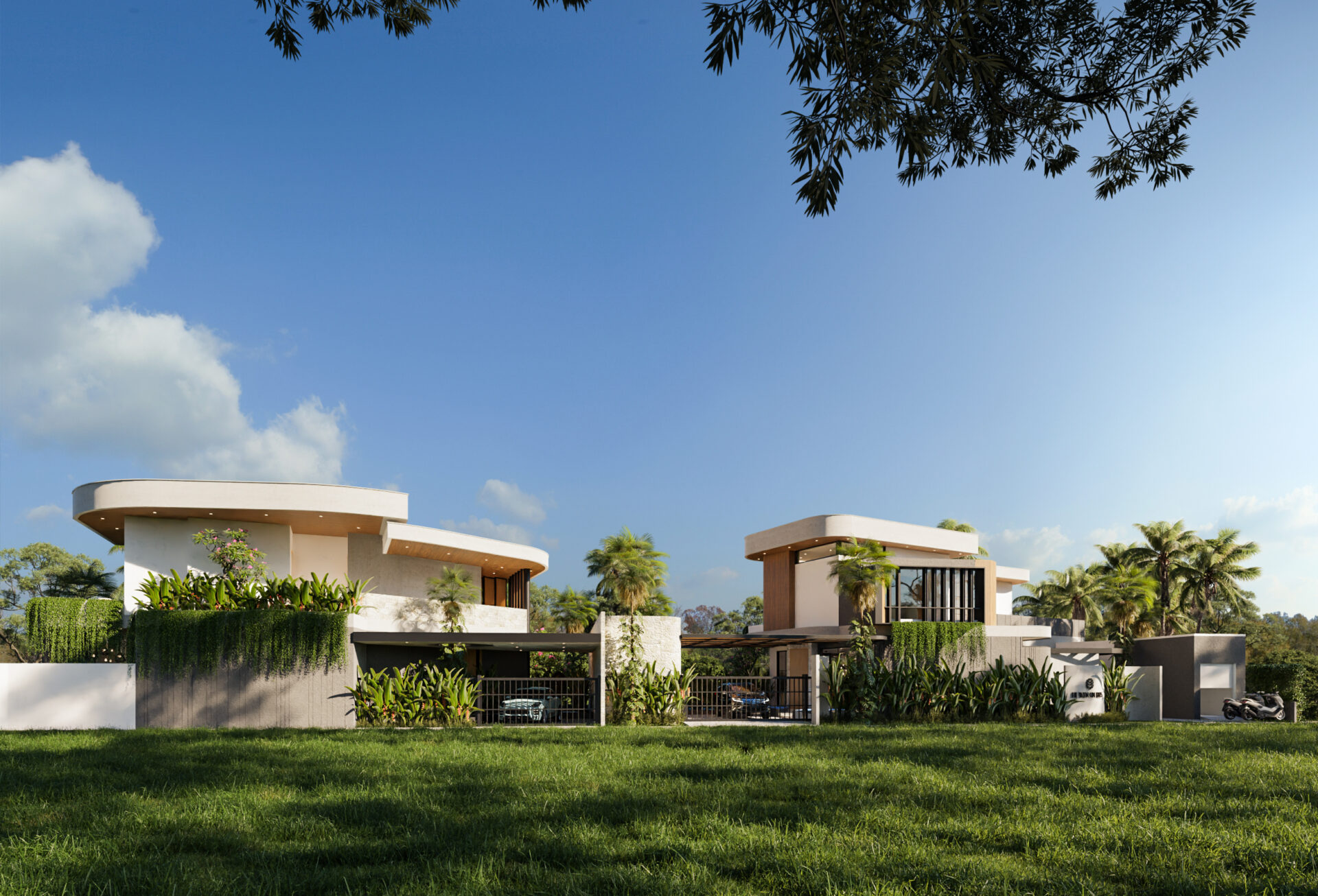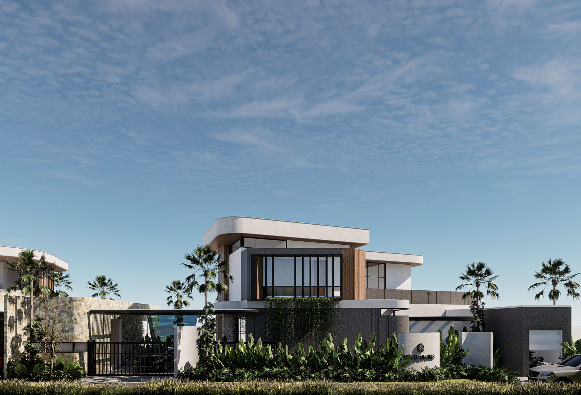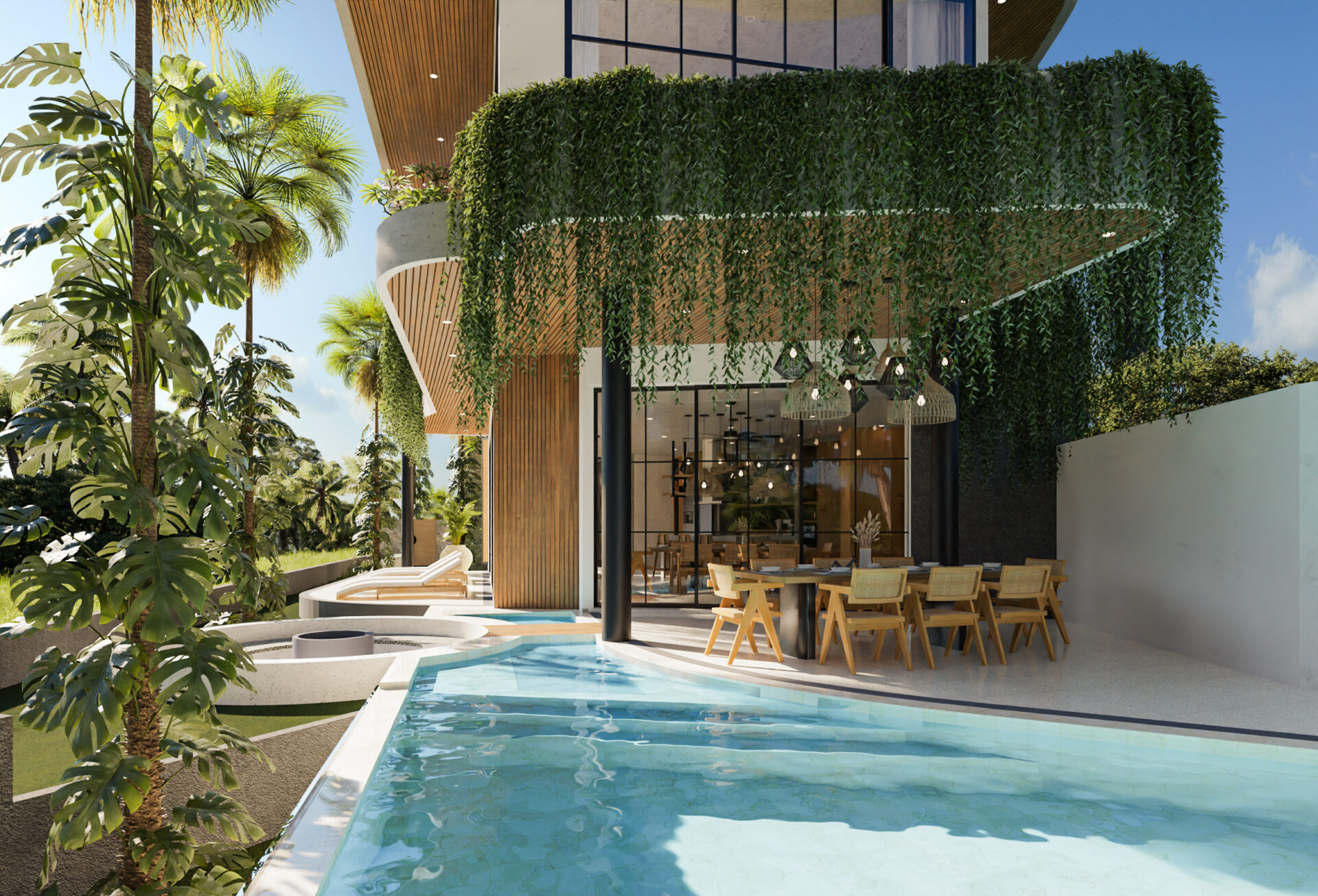 The villas are seamlessly integrated into the sloping landscape, creating a harmonious connection with the environment. Lush gardens, cascading waterfalls, and breathtaking views of Tampah Beach provide a truly immersive experience. The design embodies the principles of simplicity and efficiency, hallmarks of Bauhaus architect philosophy, ensuring that every element serves both an aesthetic and functional purpose.