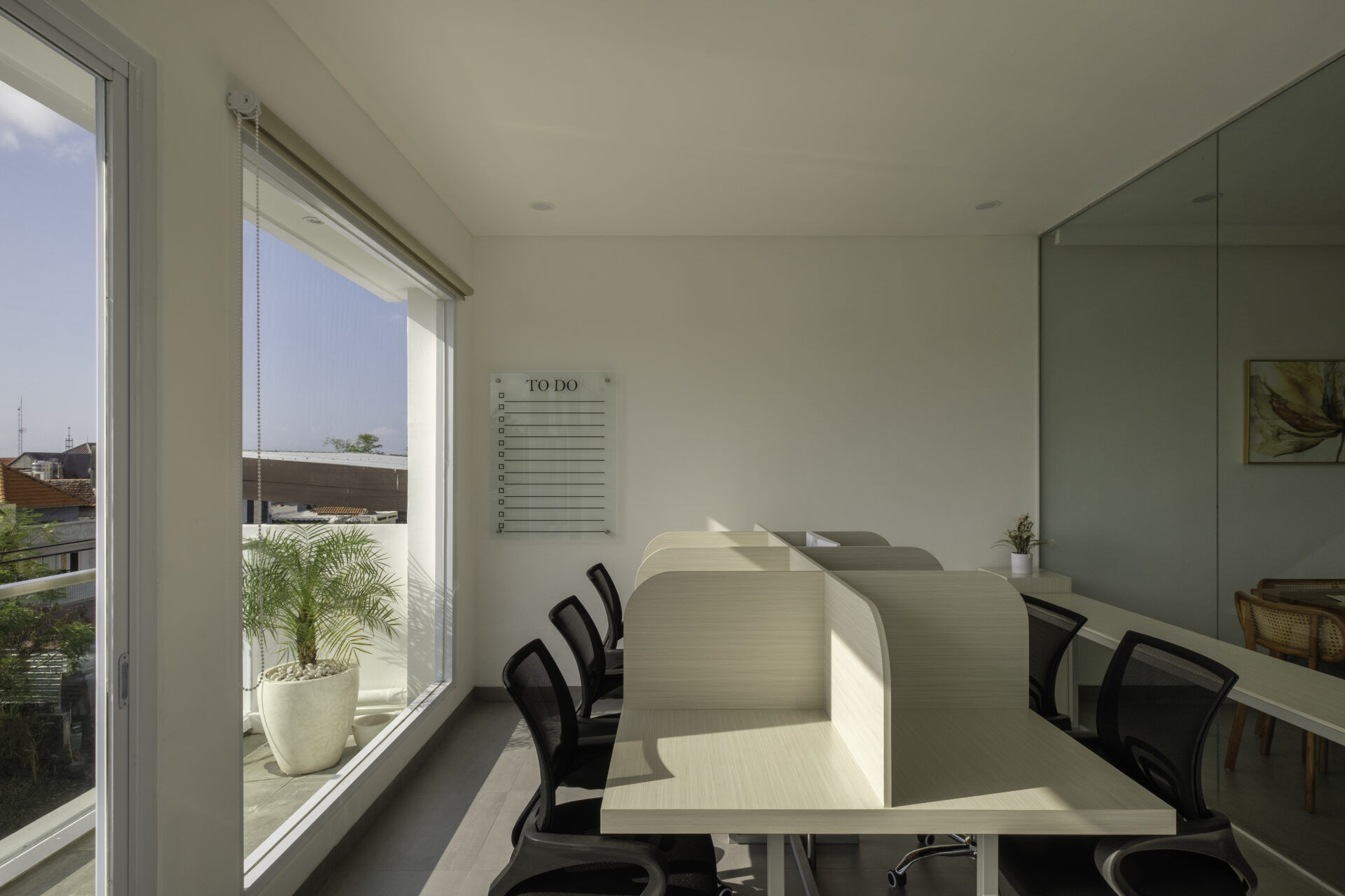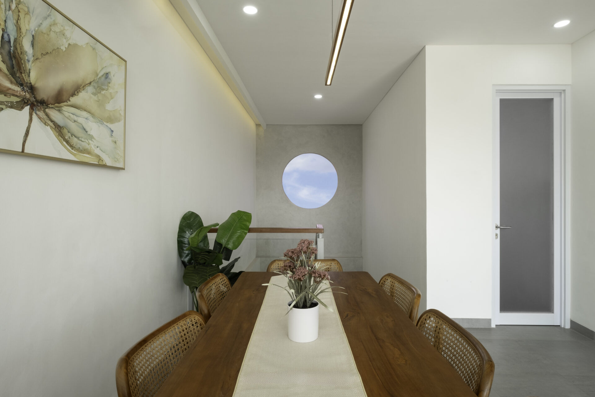 To achieve the client’s vision, the interiors incorporate warm materials, textured wall accents, and a soft beige color palette. These elements contribute to the overall aesthetic of the space, making it feel cozy yet sophisticated. The combination of textures and materials aligns perfectly with the principles of minimalist interior design, keeping the environment clean and uncluttered.