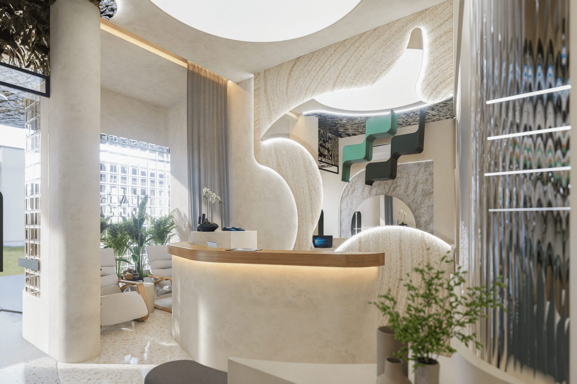 We successfully transformed that vision into a soft, organic expression of biomorphic architecture where every curve and contour echoes the grace of nature. Each element, from the flowing ceiling lines to the tactile textures, is designed to nurture calmness, connection, and care for their patients.