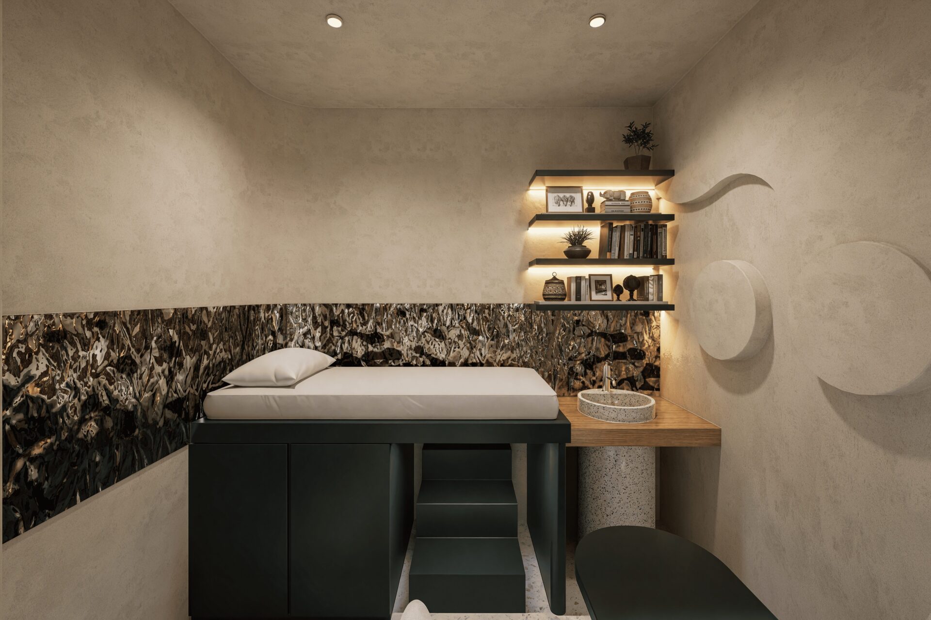 Inspired by the rhythm of the coast, the design uses curved forms and indirect lighting to reduce visual tension. The result is a biomorphic healthcare environment that feels more like a tranquil retreat than a clinic. This is a space where architecture itself becomes part of the therapy.
