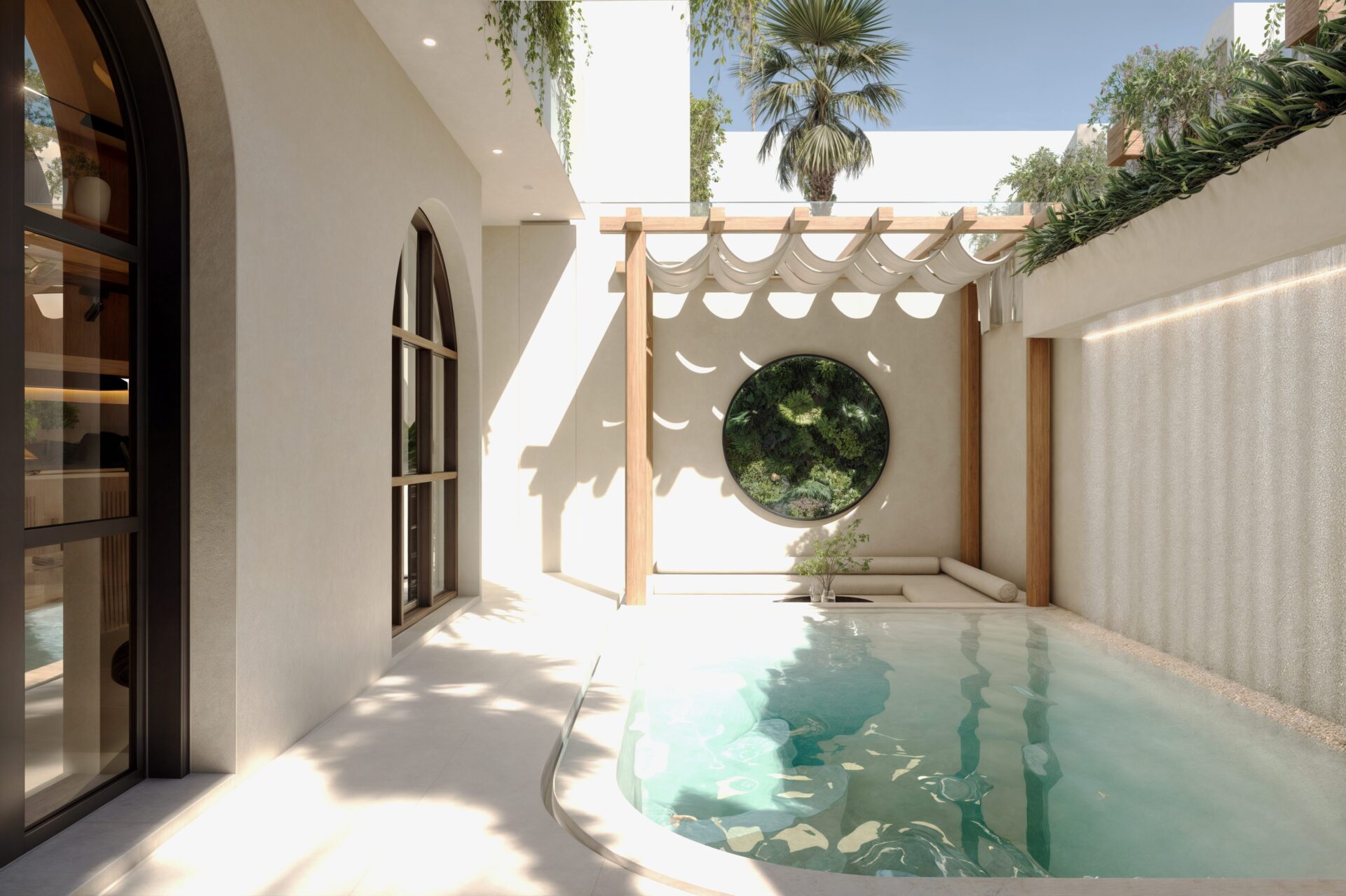 Guided by the Manon Design Studio’s philosophy, “Nature Inspired, Brand Defined,” Taupe Botanica Villa brings forth a harmonious connection between natural elements and refined luxury. Inspired by taupe’s earthy palette, the design integrates textures and materials that mirror Bali’s natural beauty. Mediterranean architecture is reflected in the villa’s arches, open-air spaces, and soft neutral tones, which combine effortlessly with tropical landscaping to create a timeless aesthetic.